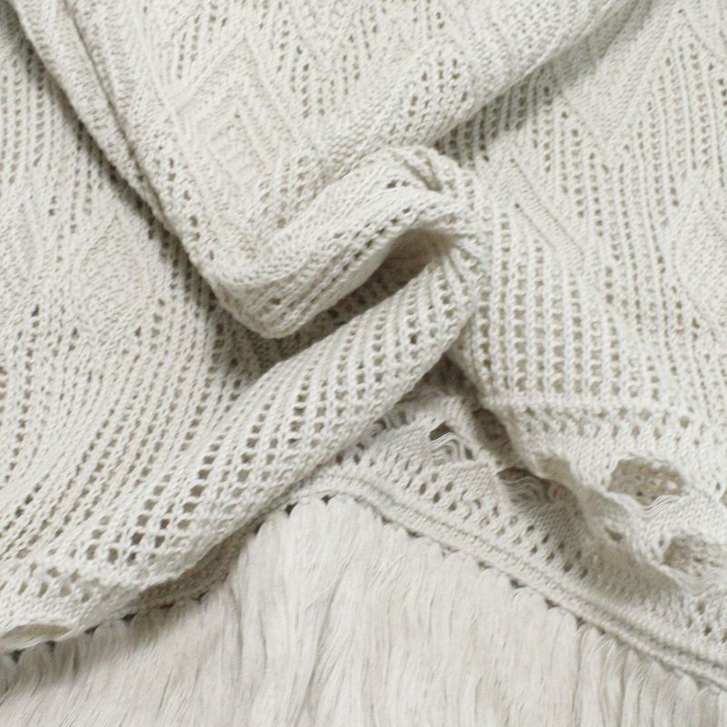 素朴な風合いのコットン糸を透かし柄に編みあげています。