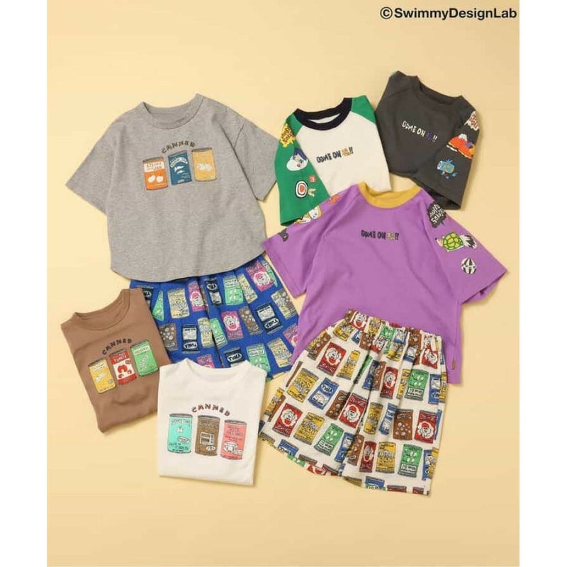 ゆるいタッチで描かれた缶詰の総柄がポイント。