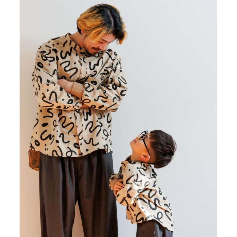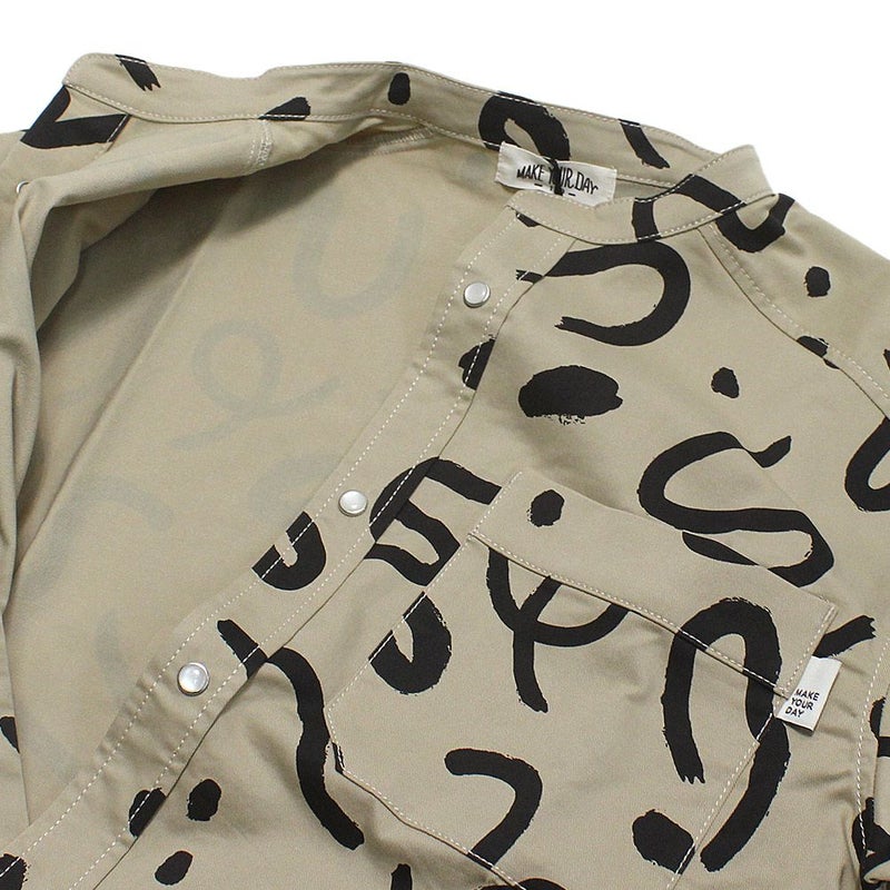 “メイクユアデイ”の総柄バンドカラーシャツ