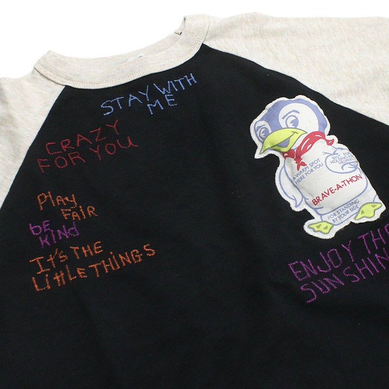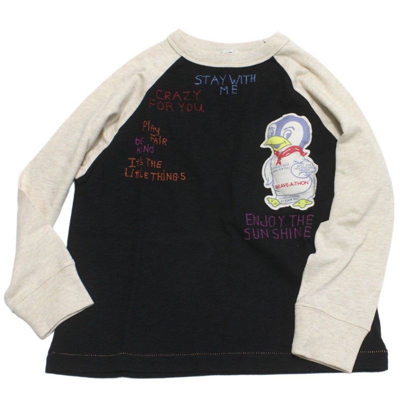 袖のカラーを切り替えたラグランスリーブのロンT。