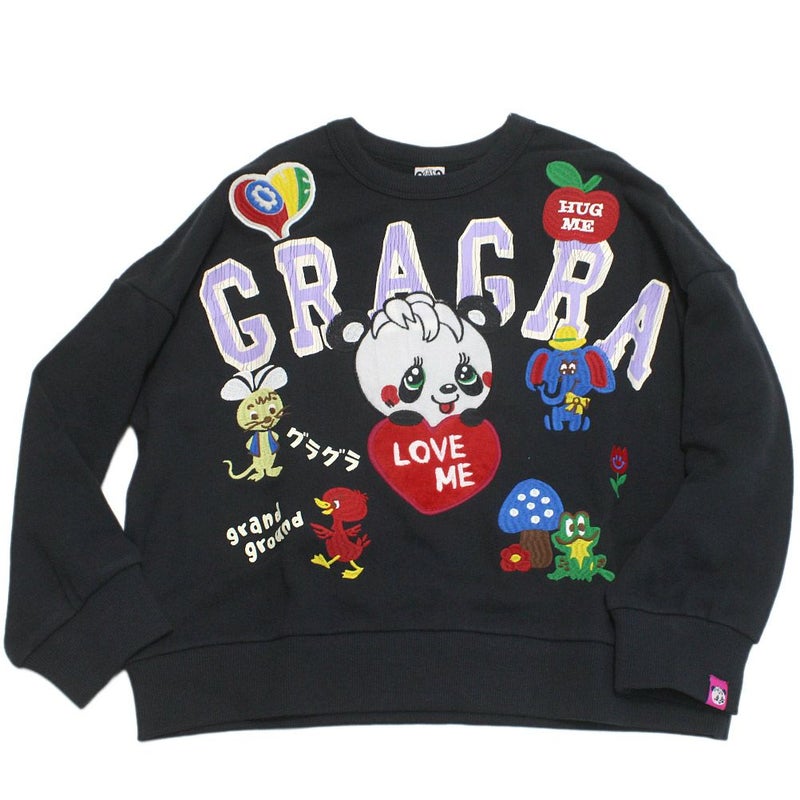 “グラグラ”のレトロ刺繍 ワイドトレーナー