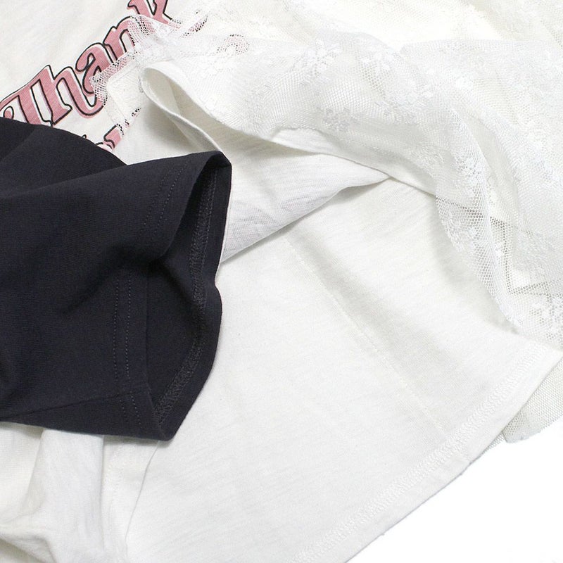 バンドTのようなプリントとラグラン配色が特徴。