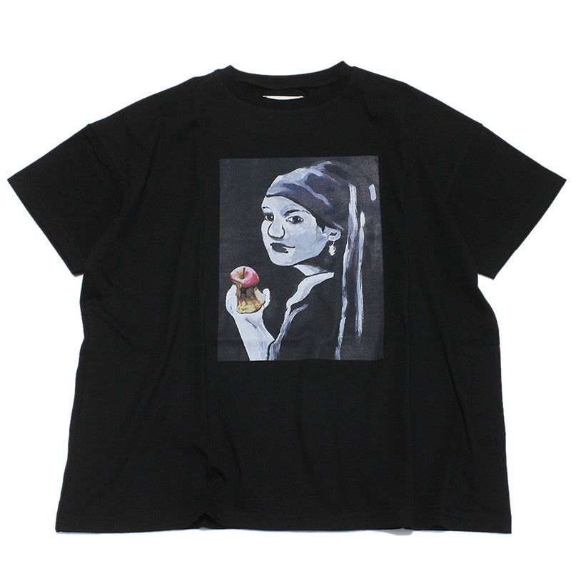 [ミチリコ] Girl nibbling apple Tシャツ ブラック