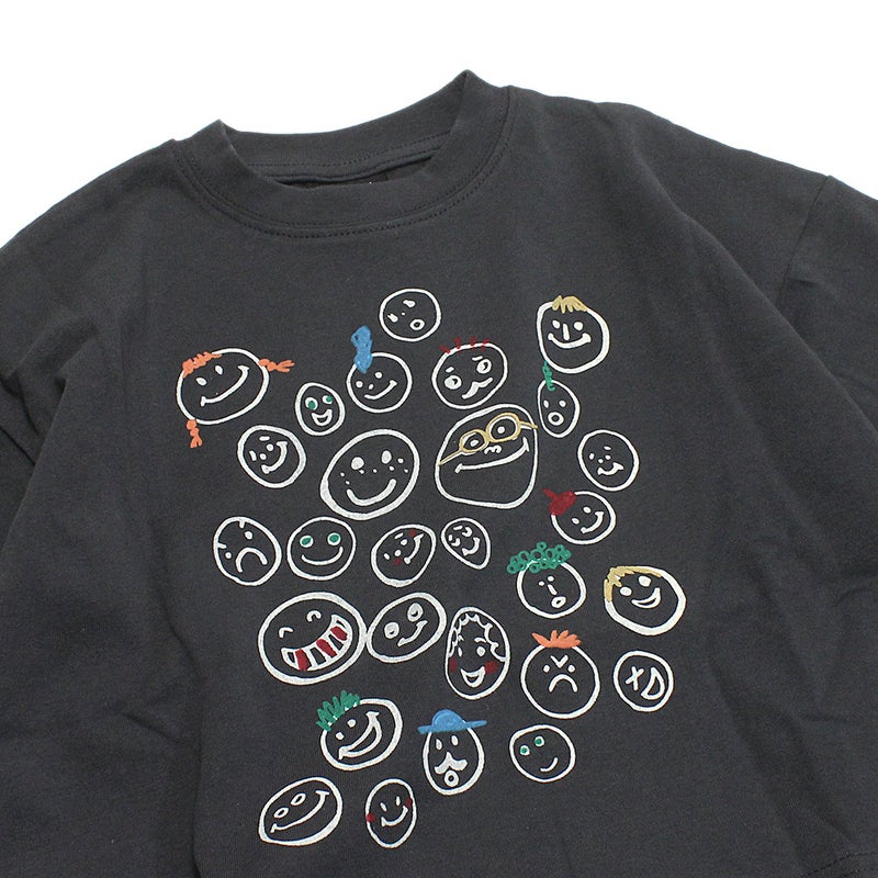 [ニードルワークス] スマイル柄ワイドTシャツ ブラック