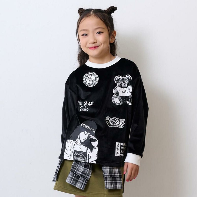 [エックスガールステージズ] MIX モチーフ起毛トレーナー クロ(80)