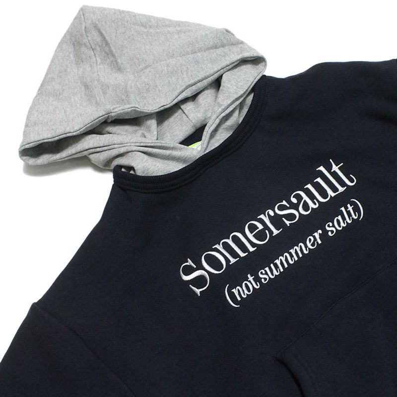 フェイクレイヤードデザインが特徴のプルオーバーフーディー。