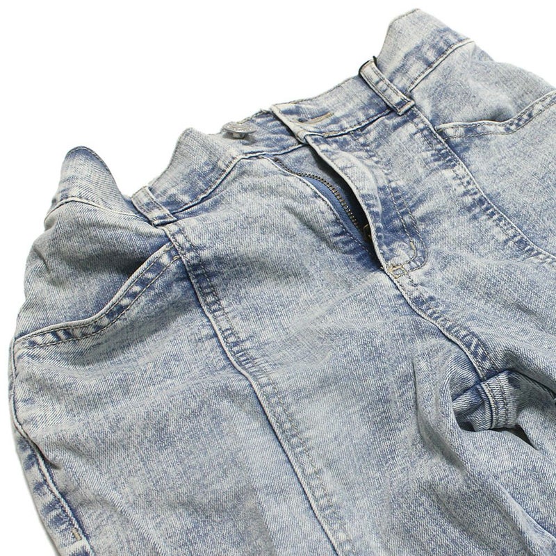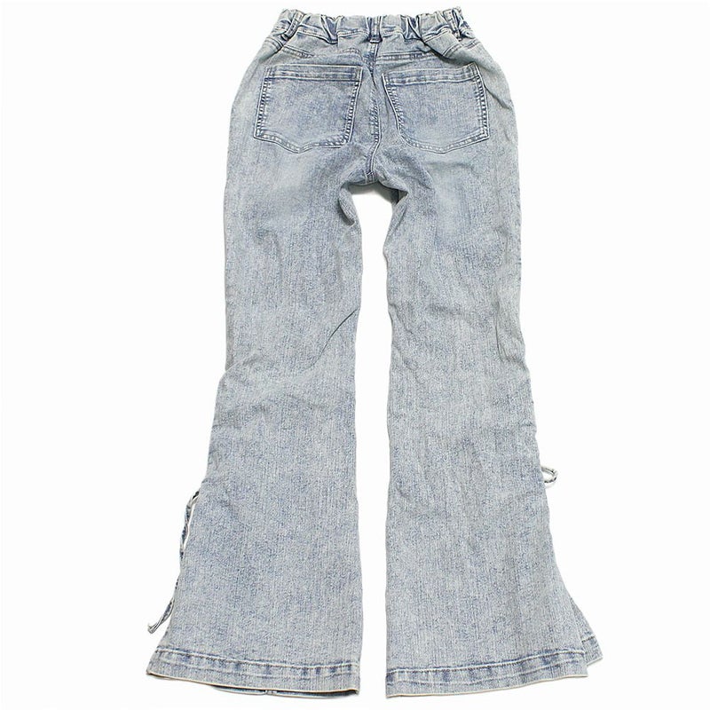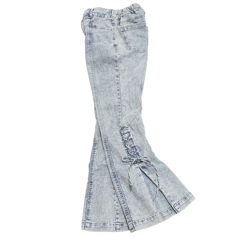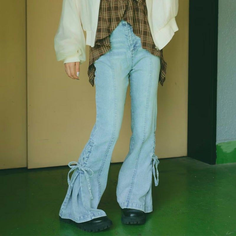 サイドのレースアップ仕様がポイントのフレアデニム。