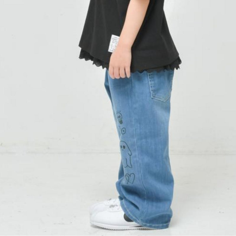 [ニードルワークス] 【NeWo】ラクガキデニムパンツ ブルー