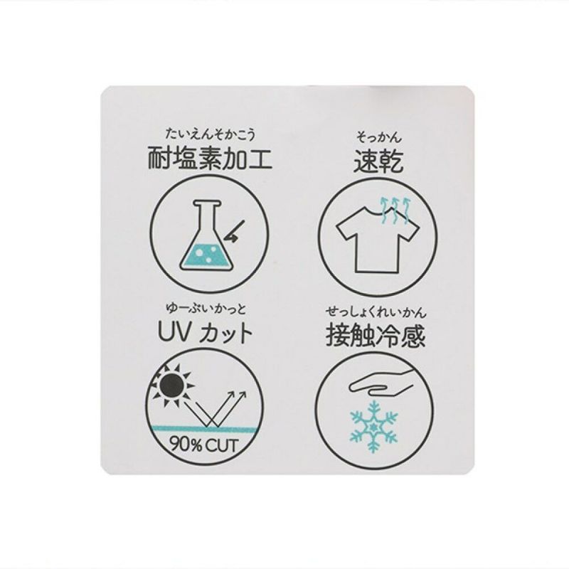 生地は耐塩素加工が施され速乾性に優れた通気性の良い素材。
