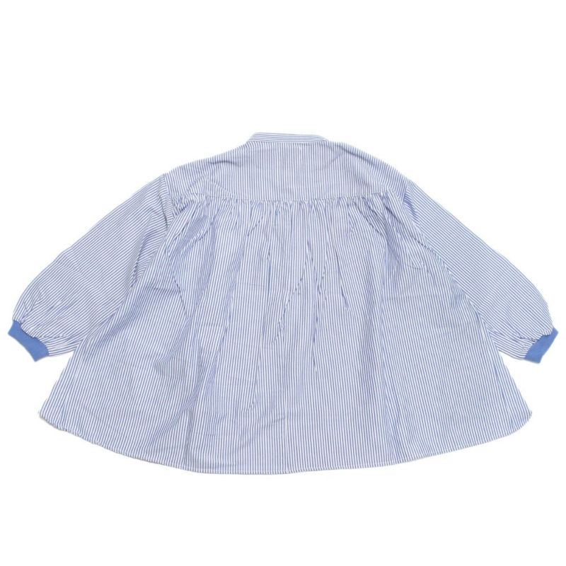 ふんわりしたフレアシルエットのストライプシャツ。