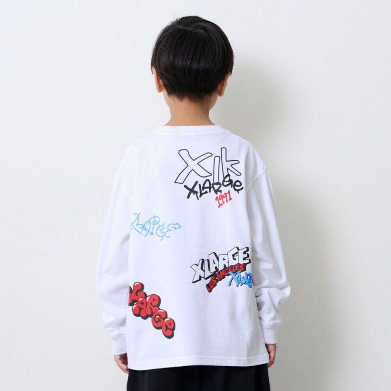 “エクストララージキッズ”の総柄グラフィティ長袖Tシャツ