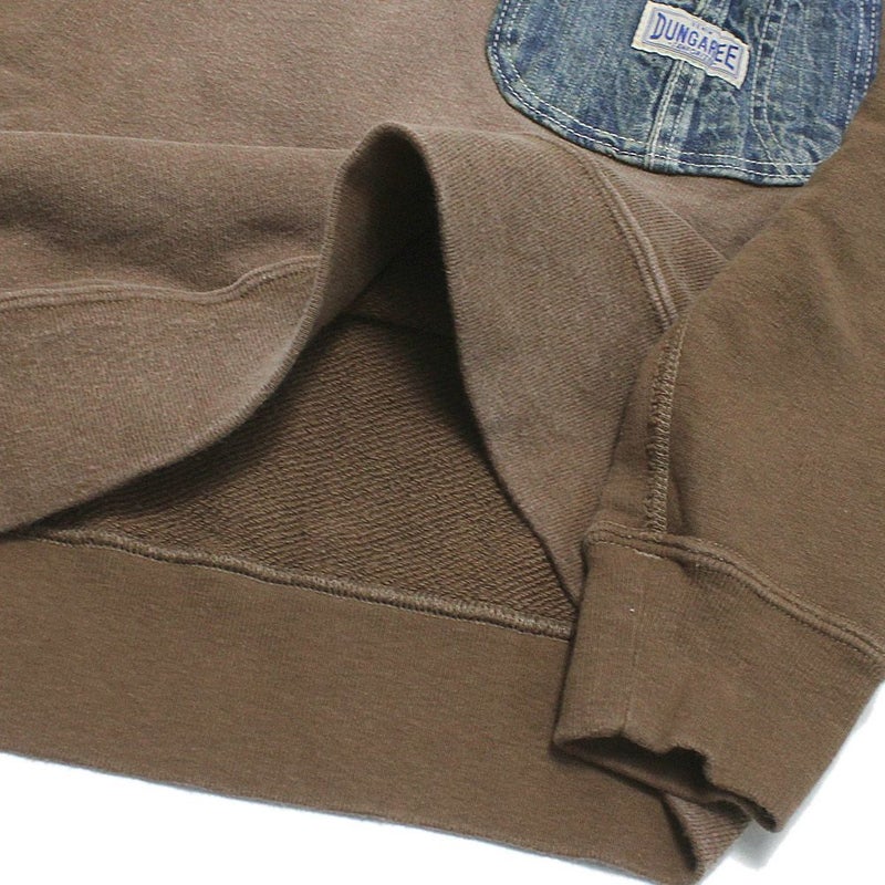 胸元にデニムのポケットを配したプルオーバースウェット。