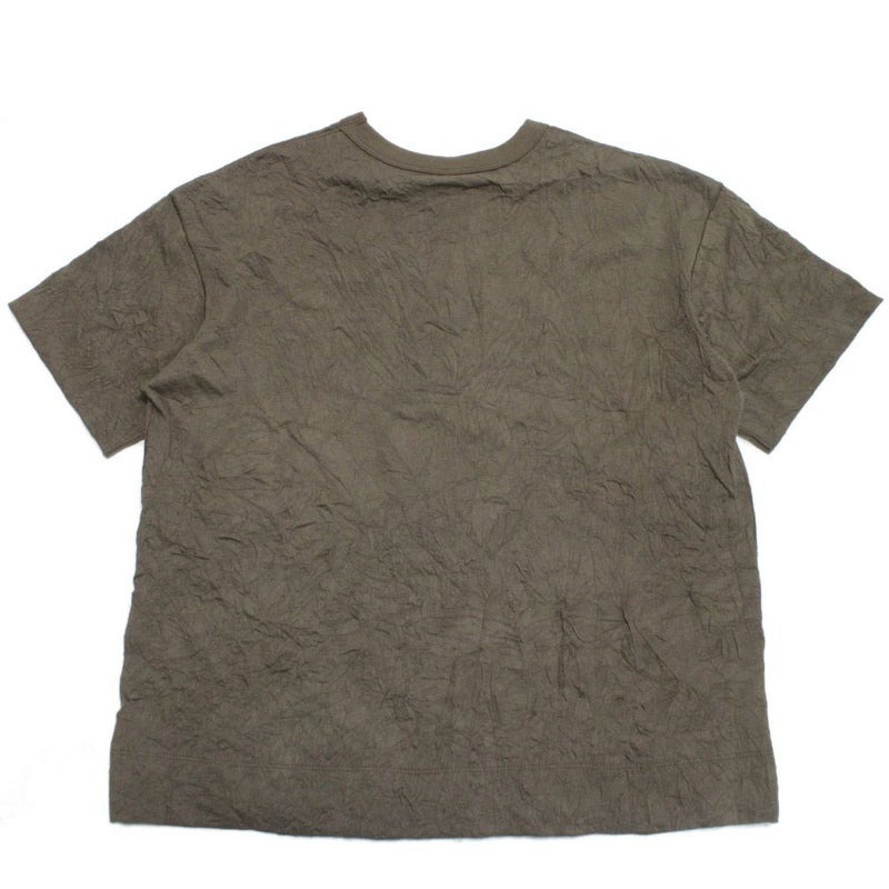 シワ加工による凹凸のある表面感が新鮮な印象のTシャツ。