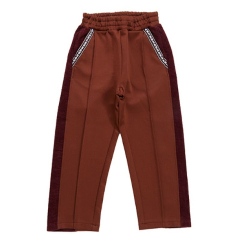 ワイドに切り替えた両サイドのコーデュロイがアクセントになったリメイク風のジャージ。