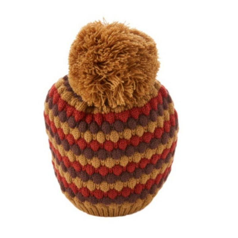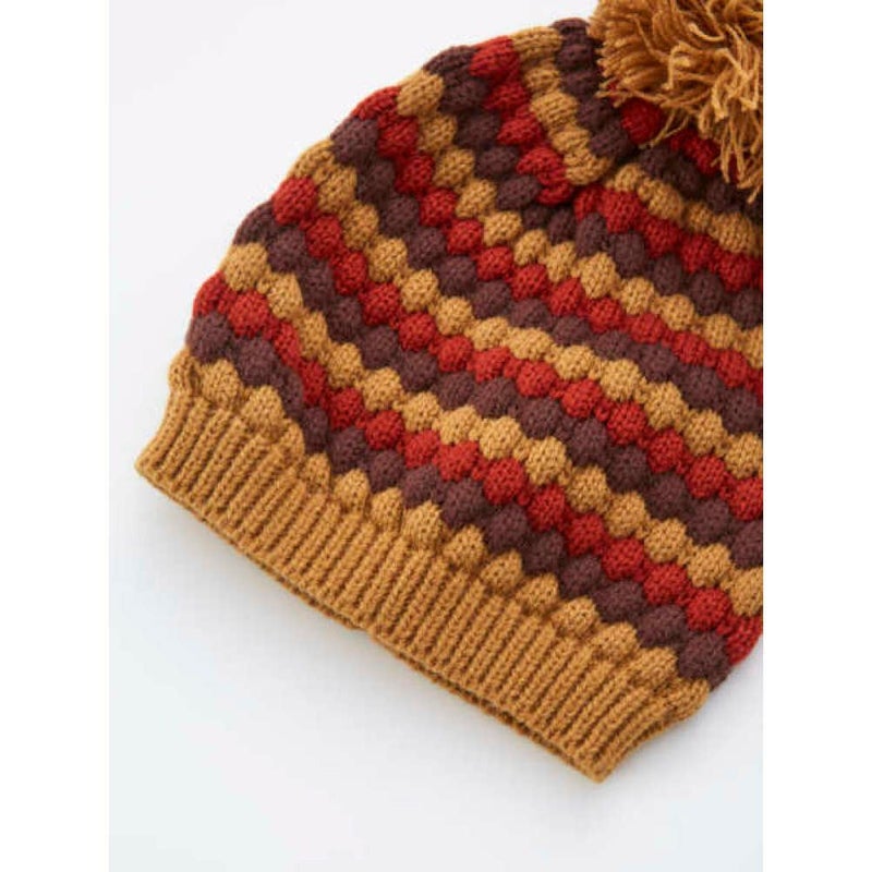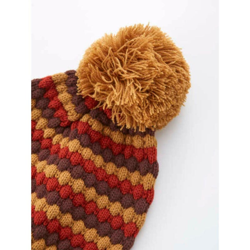 3色使いのポップコーン編がポイントのニットキャップ。