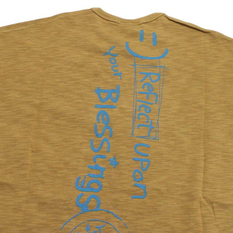 手書き風のメッセージプリントが印象的な半袖Tシャツです。