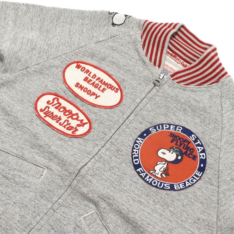 前と右肩にスヌーピーのワッペン付き。