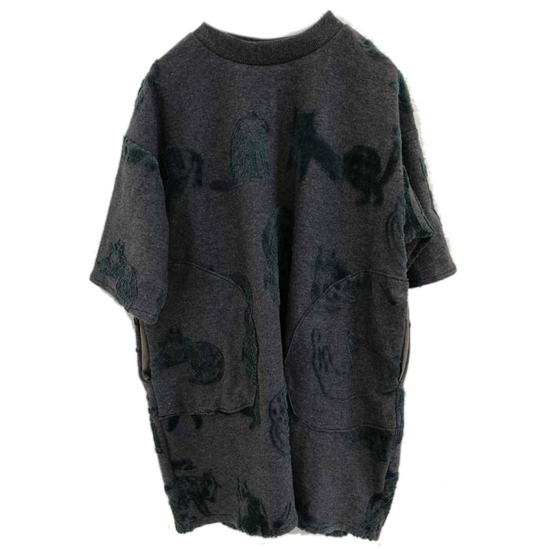 [ニードルワークス] CATフロッキージャガード天竺BIGワンピース チャコール