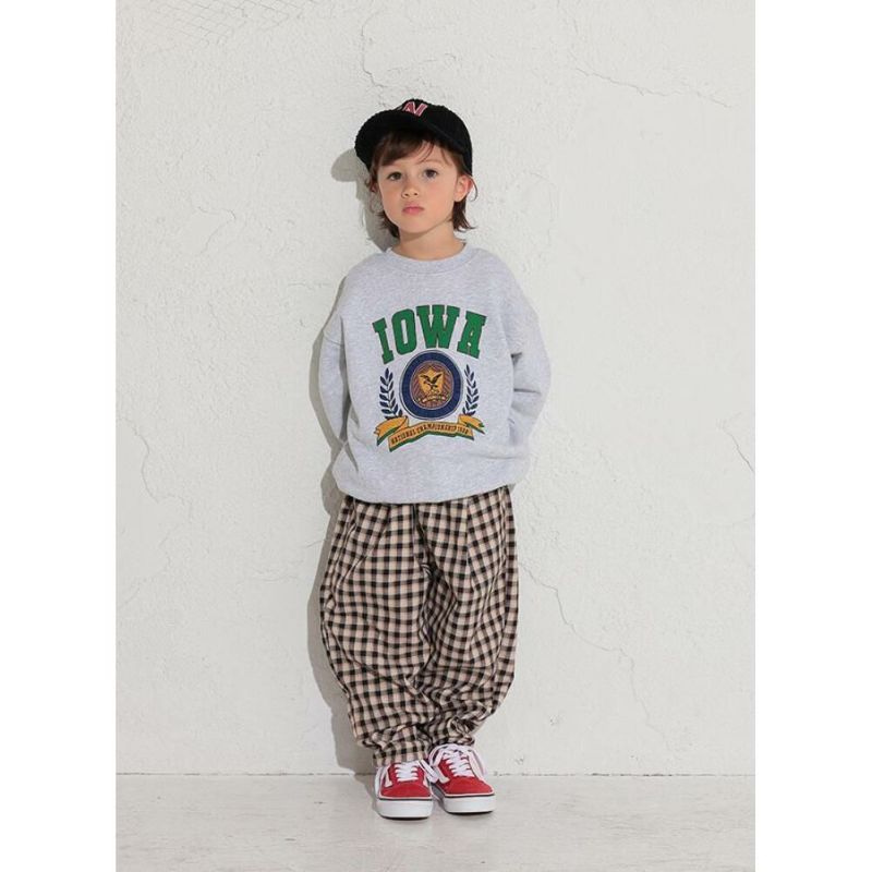 カレッジトレーナー風のプリントデザインがカジュアルに着回しやすいアイテムです。
