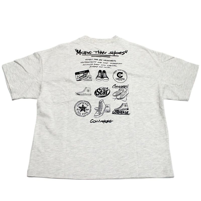コンバースを代表するスニーカーをバックにプリント。