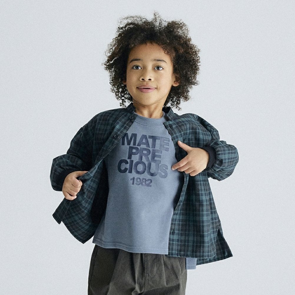 MODEL:114cm / 19kg / グリーンチェック M(110-120)サイズ着用