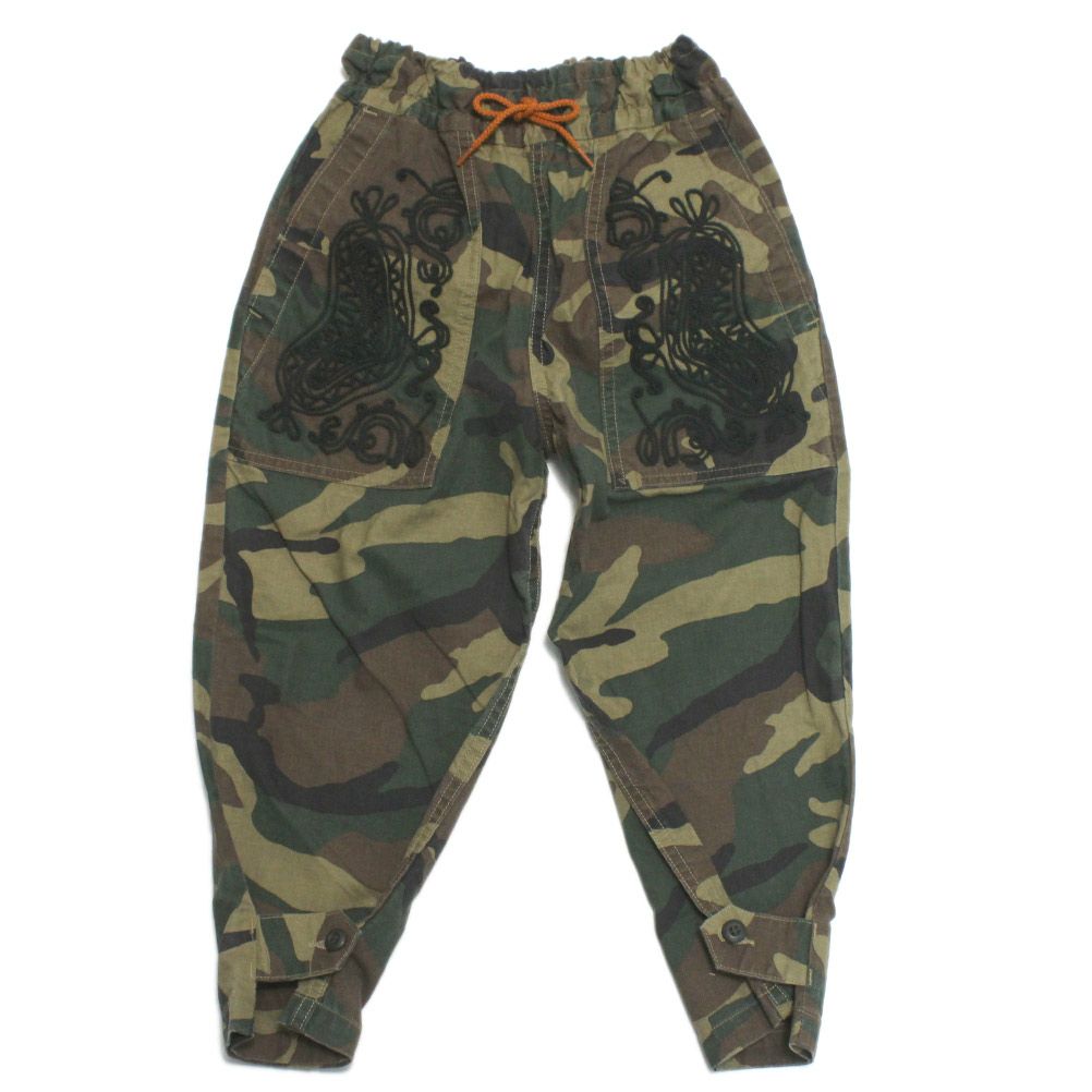 太めのイージーパンツにフォークロアな刺繍を。