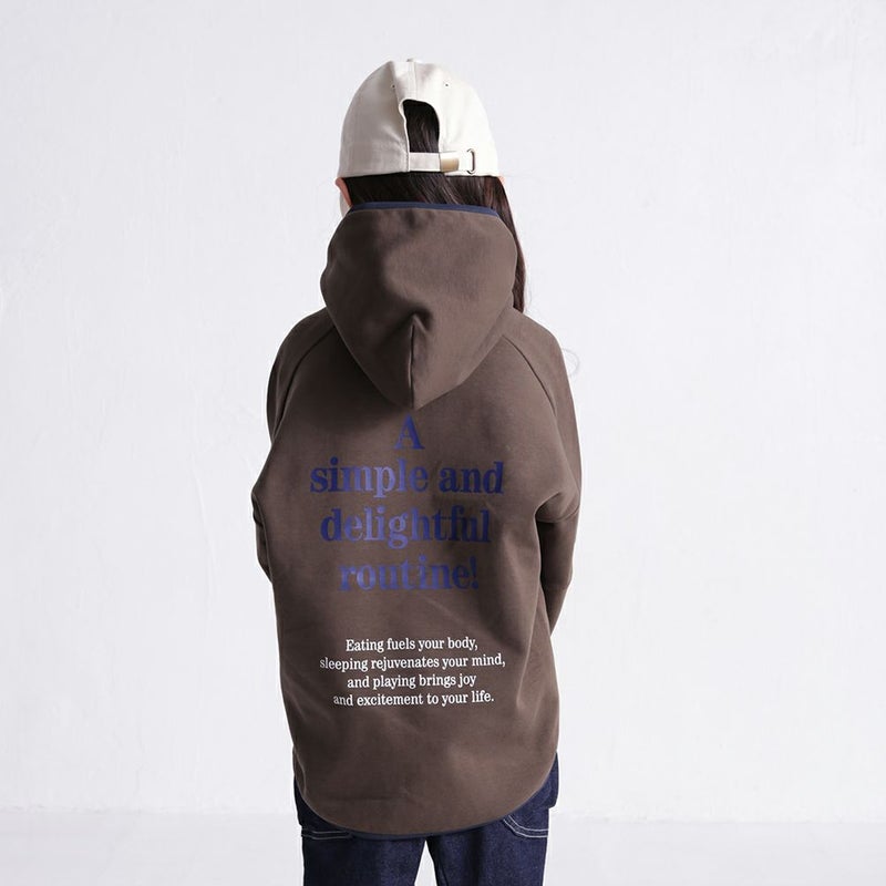 大胆な切り替えとパイピングの配色が斬新なフーディー。