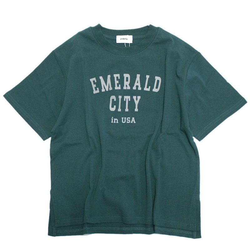 カレッジロゴが目を引くTシャツ。