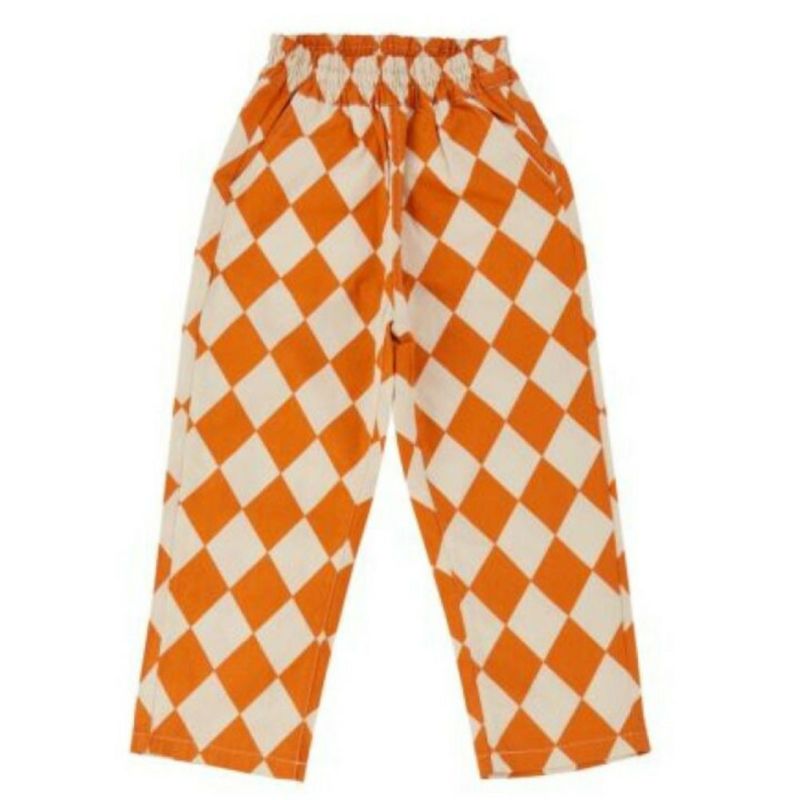 キャッチーなオリジナルテキスタイルが目を惹く総柄イージーパンツ。