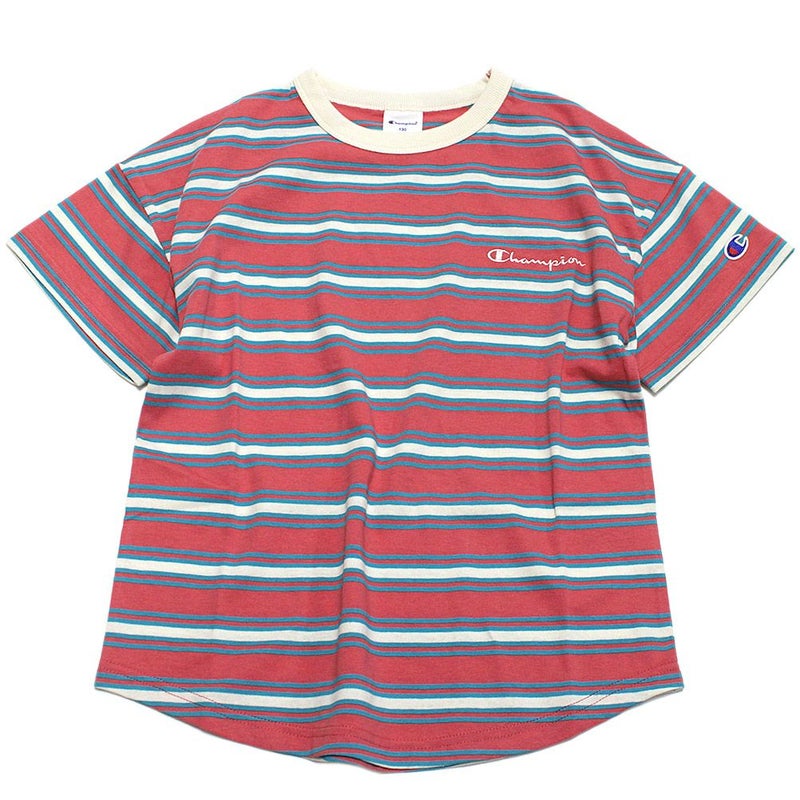 “チャンピオン キッズ”のボーダーショートスリーブTシャツ