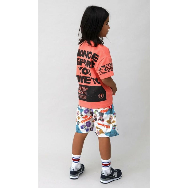 様々なキャラクターが描かれたグラフィックプリント。