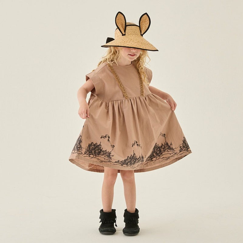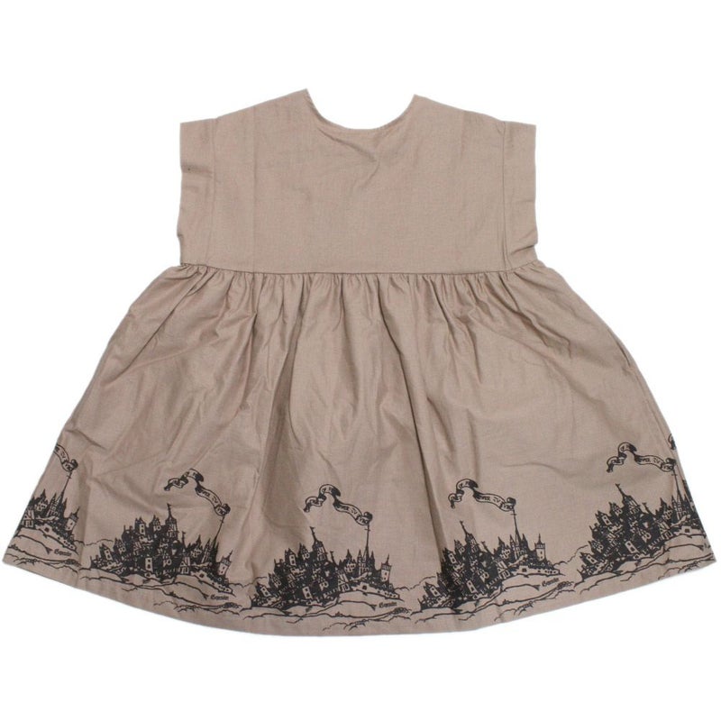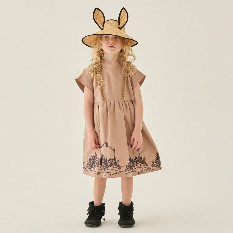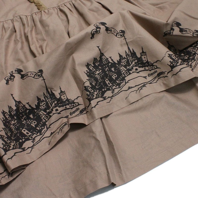 妖精王国の城下町をプリントしたひざ丈ワンピース。