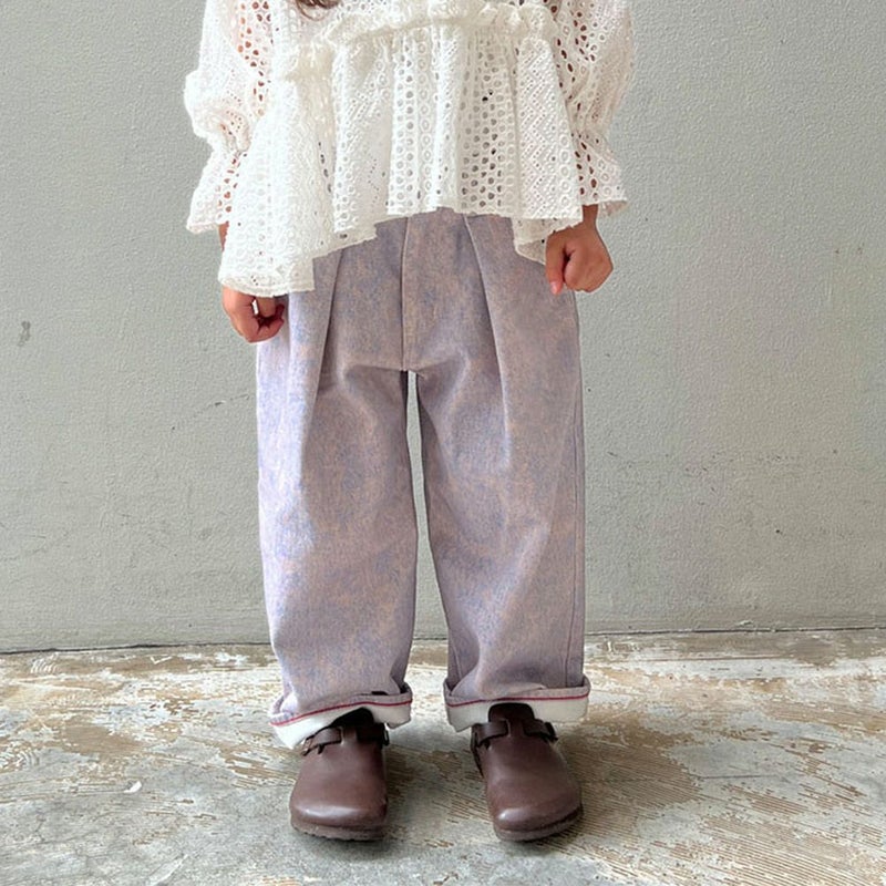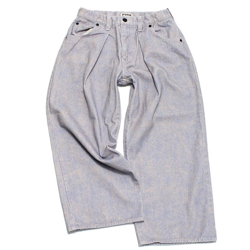 ワイドシルエットのパンツ。