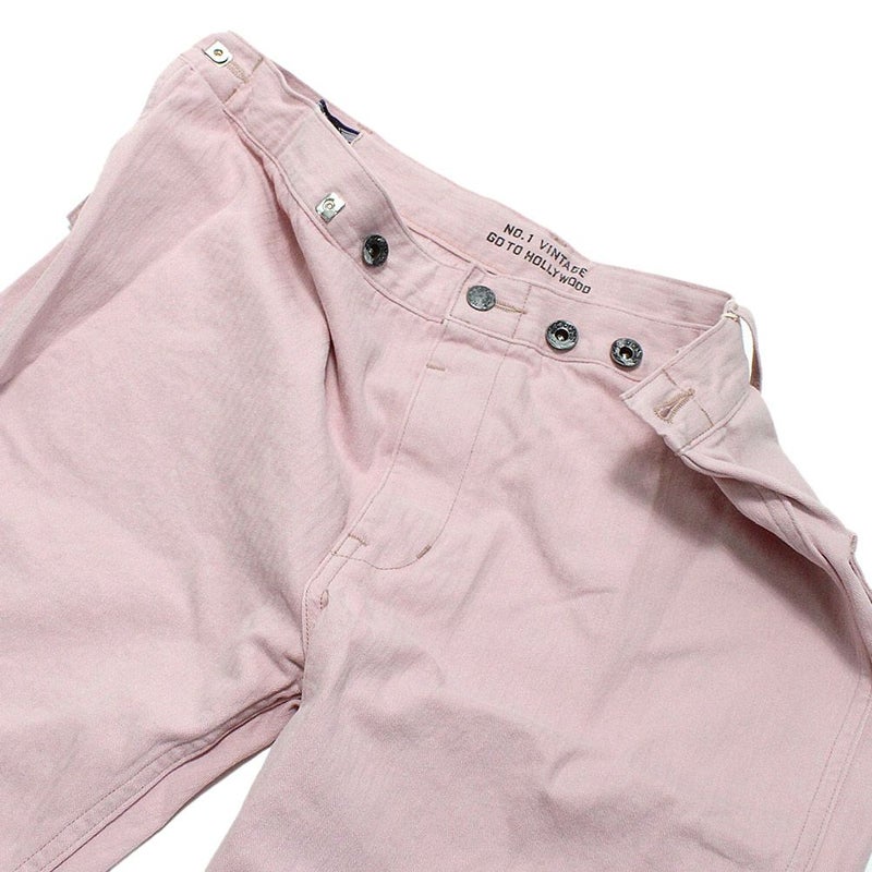大きなサイズのパンツをウエストのボタンの掛ける位置で自由にシルエットを変えることができる人気の形です。