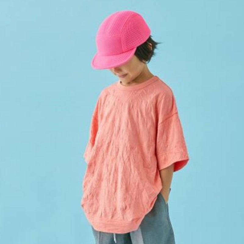シワ加工による凹凸のある表面感が新鮮な印象のTシャツ。