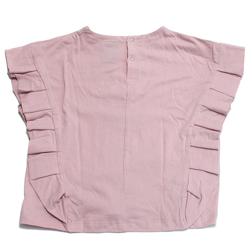 袖口に大胆にフリルをあしらったフレンチスリーブのTシャツ。