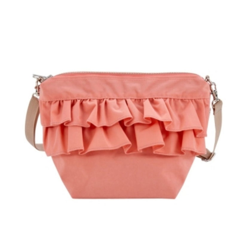 カジュアルなナイロン素材にガーリー要素をプラスしたフリルショルダーバッグ。
