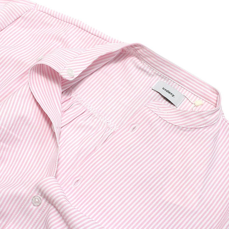 斜めストレッチが効いていて、シャリ感のあるサッカーストライプ生地。