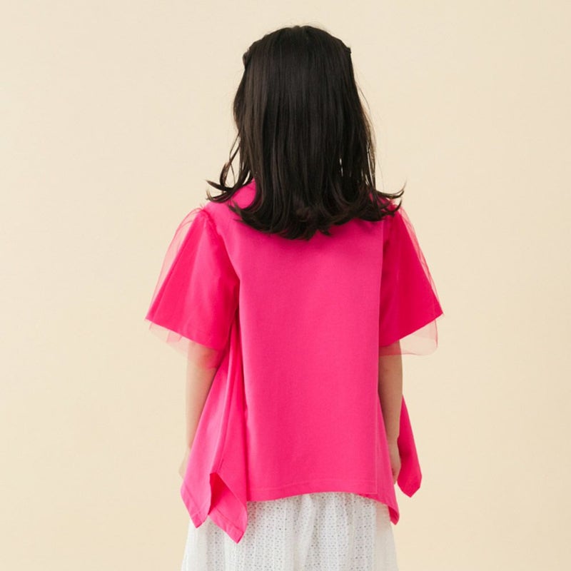 袖に柔らかなチュールを重ねることで、ガーリーな要素をプラス。