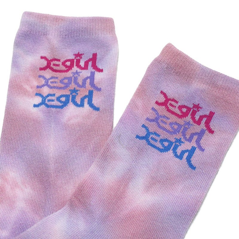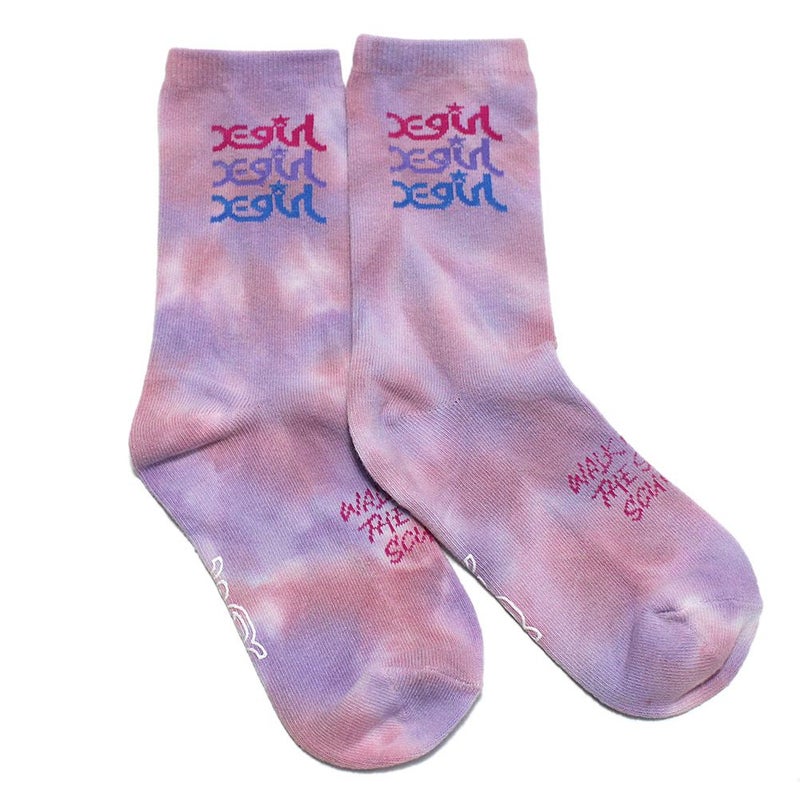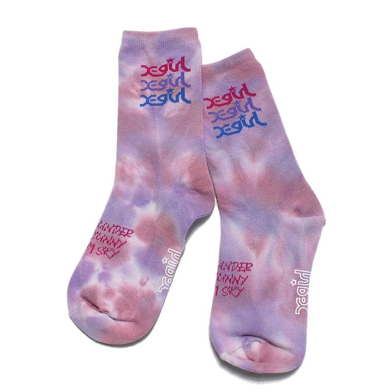 “エックスガールステージズ”のトリプルミルズロゴタイダイクルーソックス