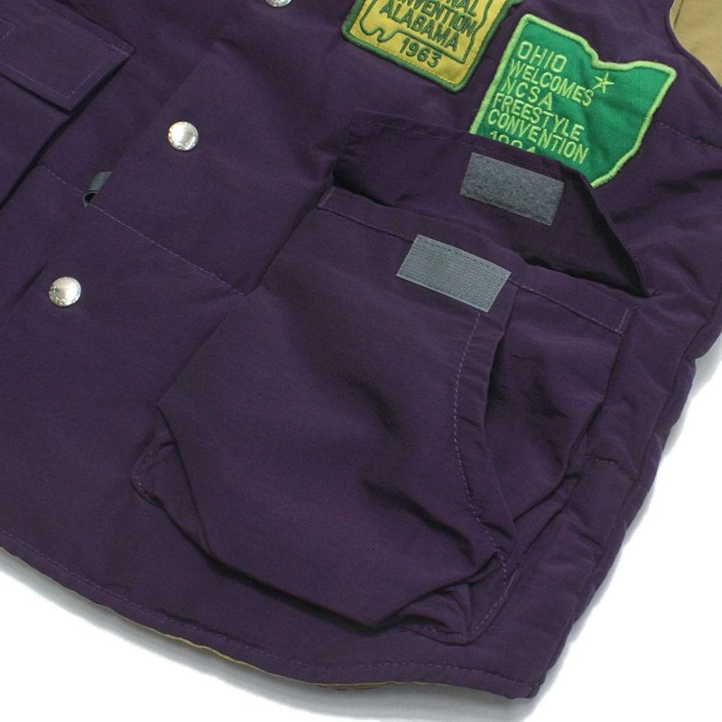 複数のワッペンをレイアウトした中綿入りベスト。