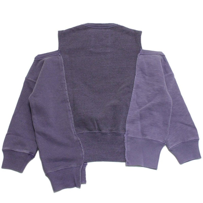 クルーネックのスウェットを3枚リメイクしてドッキングさせたデザインが個性的。