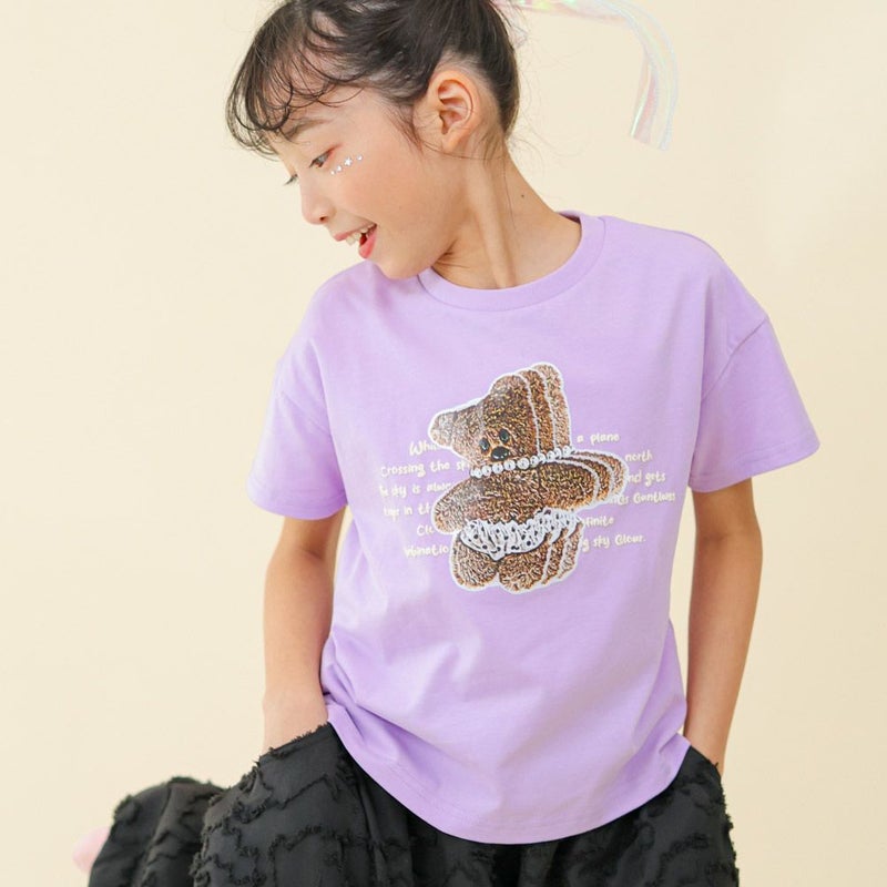 くまのプリントがキュートな半袖Tシャツです。