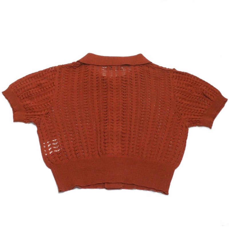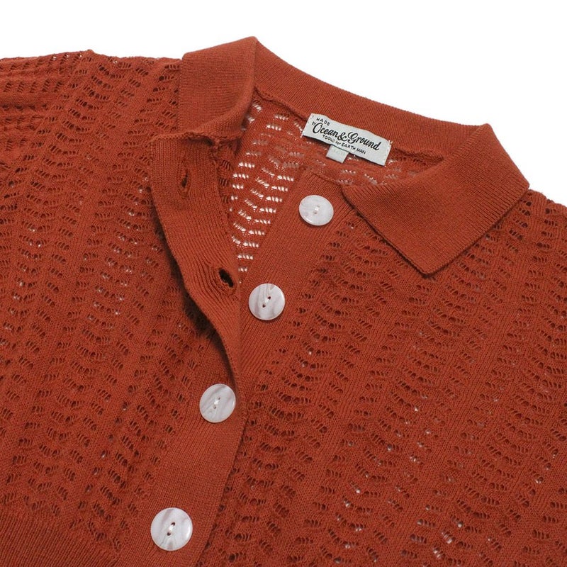 “オーシャン&グラウンド”のアイレット編み衿付き5分袖カーディガン