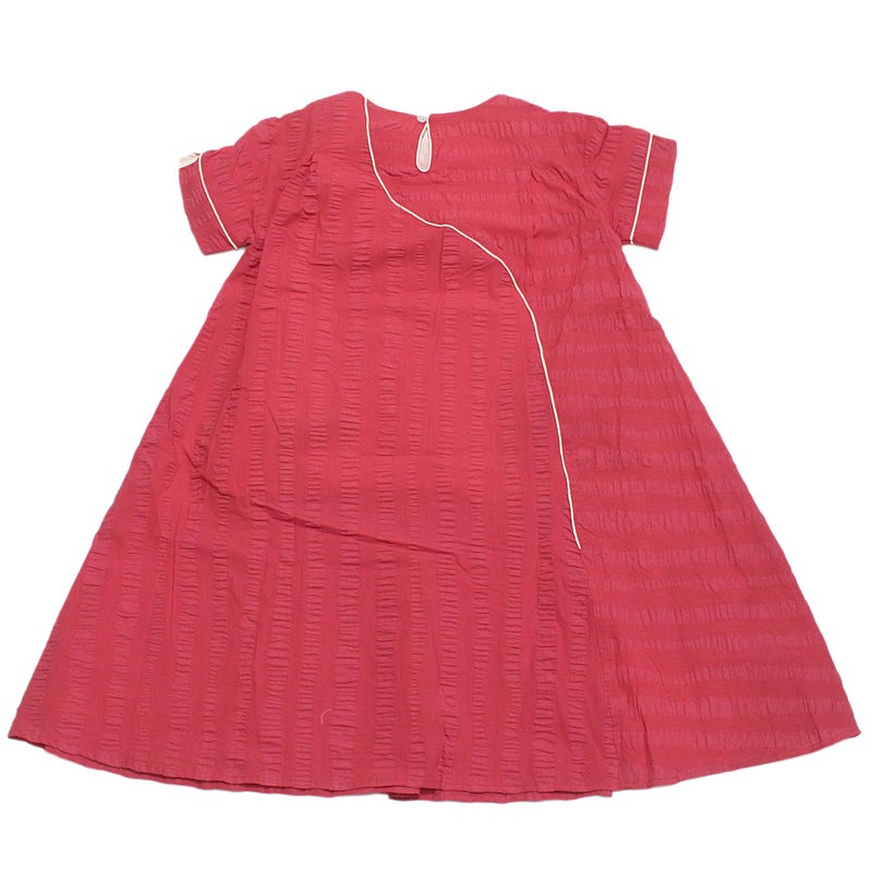 曲線を描いたパイピングがポイントのワンピース。