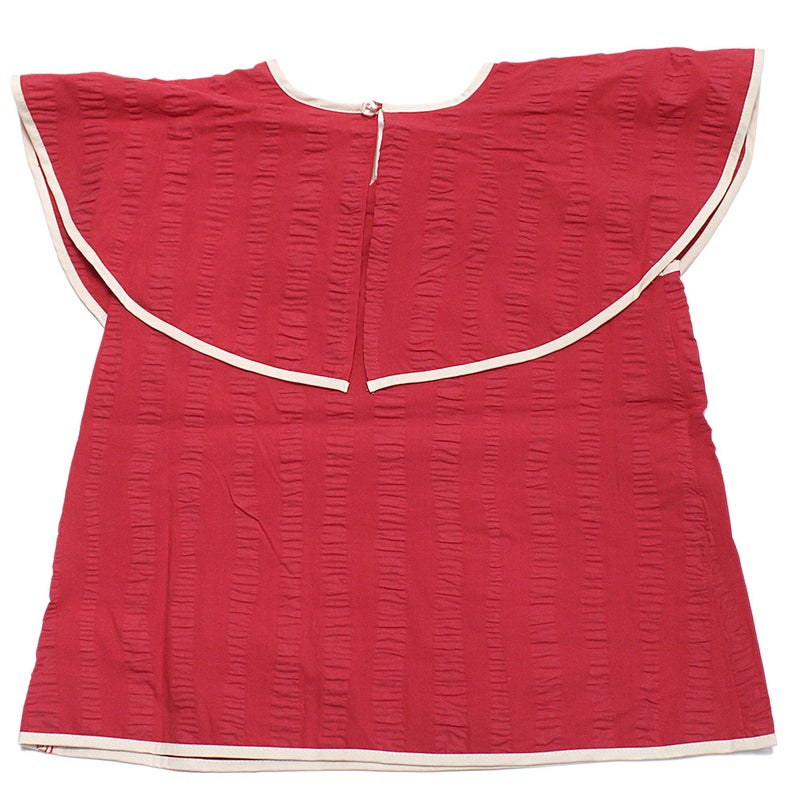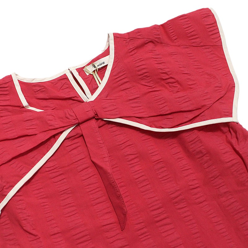 リボンの形の大きな衿が印象的なブラウスです。