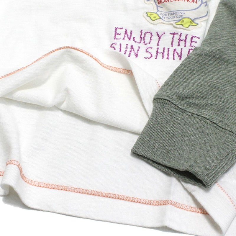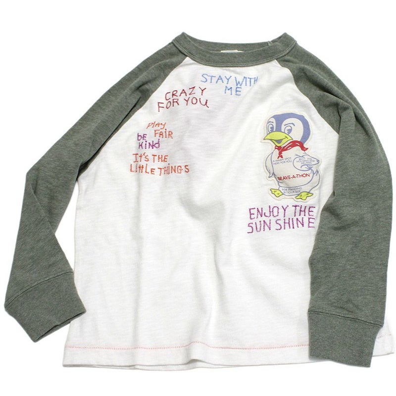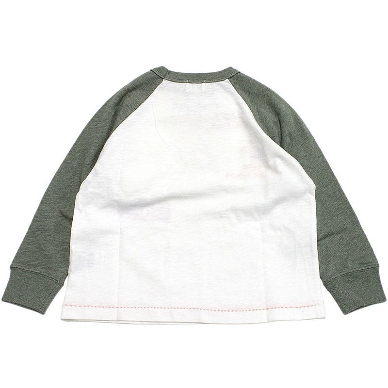 袖のカラーを切り替えたラグランスリーブのロンT。