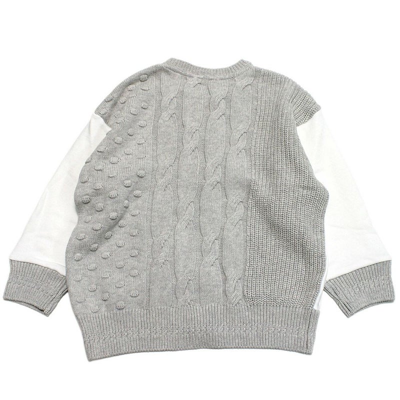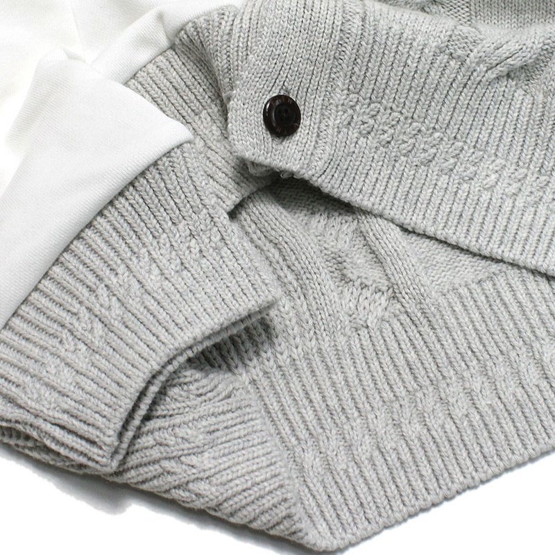 存在感抜群の縄編み・畔編み・ドット柄の3柄と裏毛を組み合わせた丸首カーディガンです。