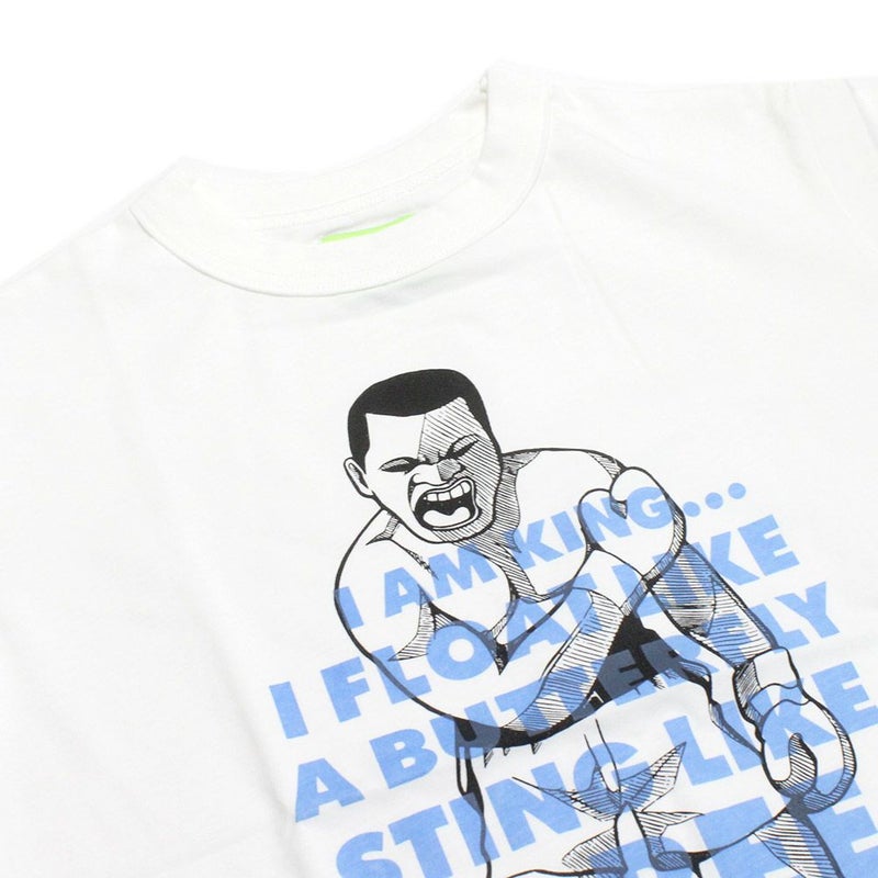 インパクトのあるイラストタッチのグラフィックに絶妙な配色で構成されたレタードデザインを組み合わせる半袖Tシャツ。