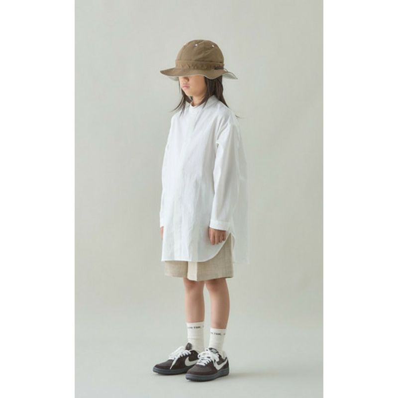 ナチュラルな素材感で、バンドカラーで比翼仕立てのスッキリとしたデザインです。